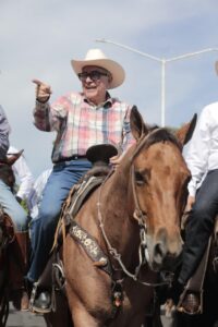 Al ritmo de la música de la tambora sinaloense y con mucho entusiasmo, se celebró con éxito la Cabalgata Tradicional rumbo a la Expo Feria Ganadera Sinaloa 2025, siendo encabezada por el Gobernador del Estado, Rubén Rocha Moya.El evento tuvo una gran convocatoria, con un sano ambiente familiar, partiendo a las 10:00 de la mañana desde la avenida General Álvaro Obregón, frente a la Catedral de Nuestra Señora del Rosario.